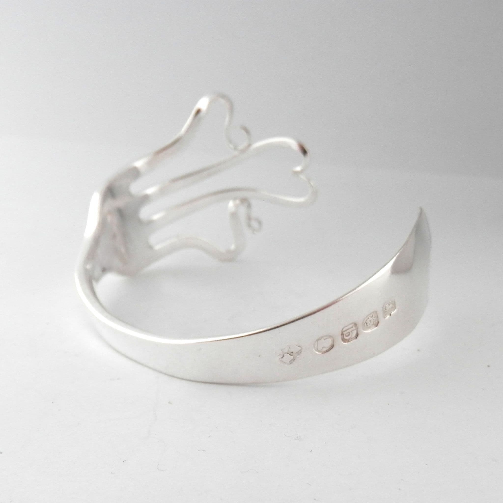 Handmade Sterling Silver Heart Swirl Fork Bracelet Bangle date 1777 (248 years old)